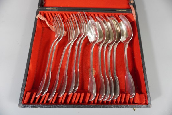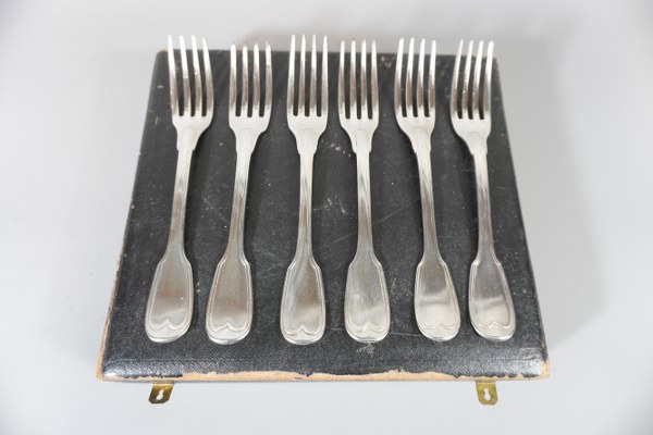 6 Couverts en argent. Poids: 965gr