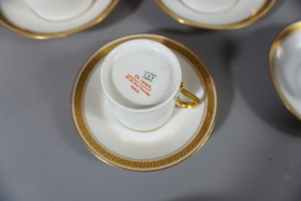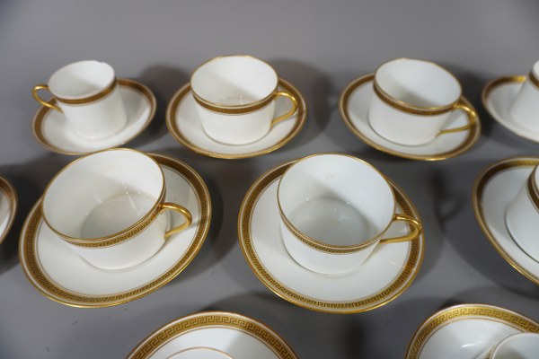 Partie de service à café en porcelaine blanc et or. Traces d'usures.