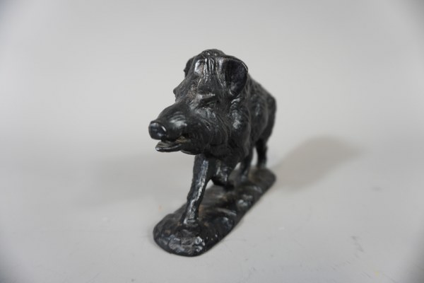 Sanglier en fonte patinée. Hauteur : 9,5 cm.