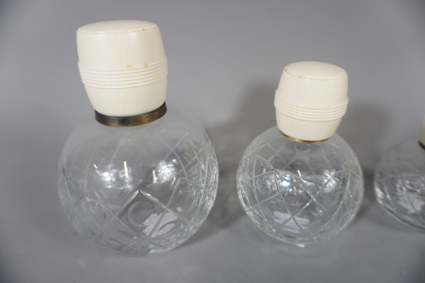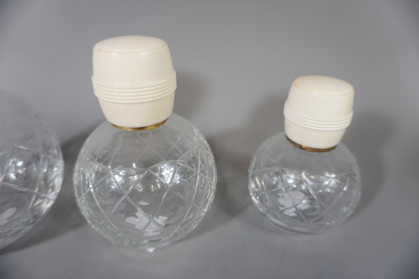 Ensemble de 3 flacons à parfum. Accidents aux bouchons intérieur. Hauteur: 14cm.
