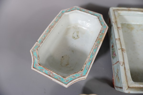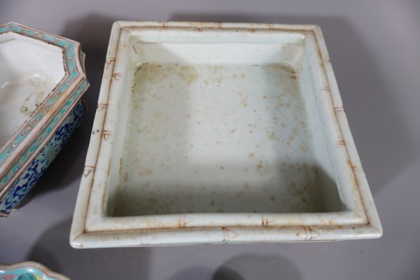 Vide poche 7x19cm, jardinière 7x17cm et 2 coupelles en porcelaine asiatique.