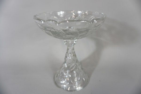Coupe à fruit sur pied en cristal à décor de fraises. Hauteur: 24cm.