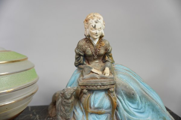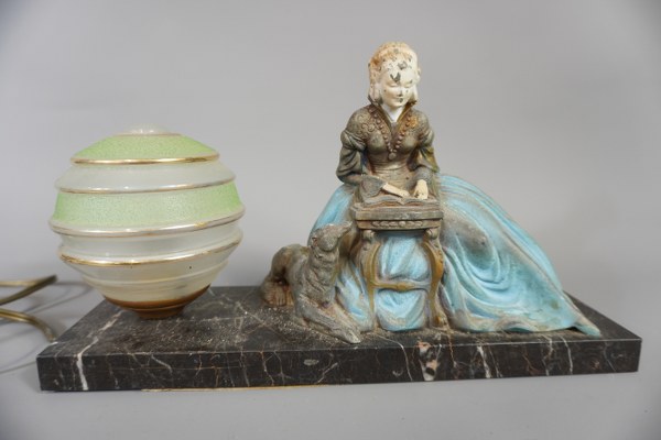 Veilleuse en régule et boule en verre sur socle en marbre. 18x32cm.
