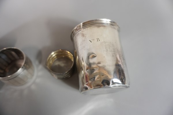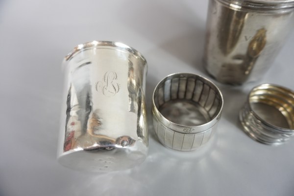 2 Timbales en argent et 2 ronds de serviette en argent. Poids: 200gr