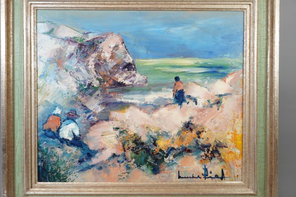 Michel Piel 1930-2016. Huile sur toile "le grand rocher. Bretagne" signé en bas à droite et contresigné au dos. 46x55cm.
