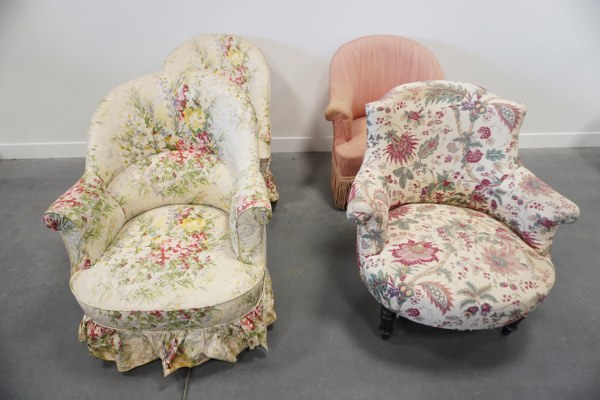 4 Fauteuils "chauffeuses" à tissus accidenté.