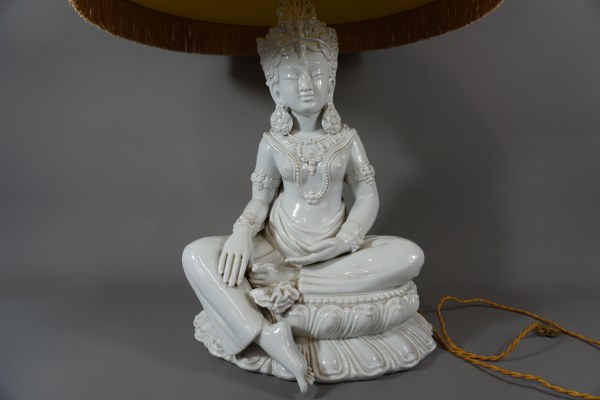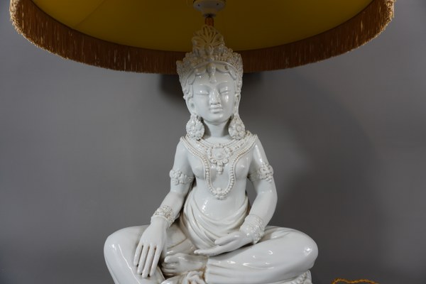 Lampe en porcelaine blanc représentant Bouddha Thaïlandais. Hauteur: 50cm.