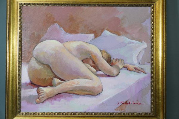 Jacqueline Tollet-Loeb 1931-2021. Acrylique sur toile "nu" signé en bas à droite. 50x61cm.