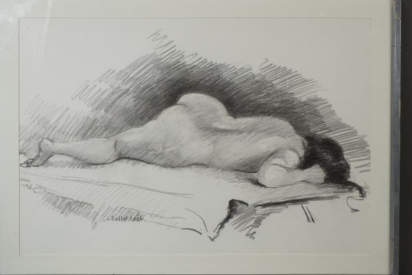 Jacqueline Tollet-Loeb 1931-2021. Fusain "nue allongée" signé en bas à gauche. 41x61cm à vue.