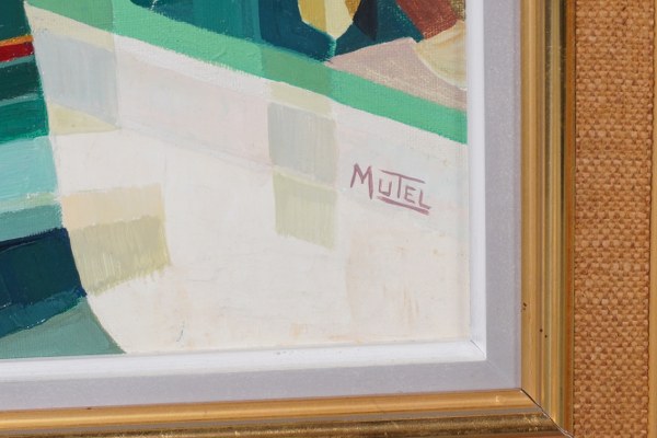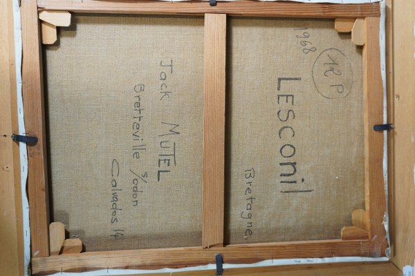 Jacques Mutel 1935-2016. Huile sur toile "Lesconil. Bretagne" signé en bas à droite, titré et contresigné au dos. 46x61cm.