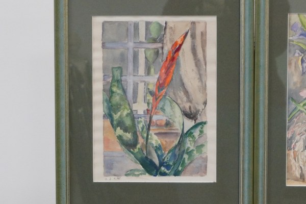 Ecole du XXe siècle. Deux aquarelles encadrées sous verre. Signées au crayon. Avec cadre : 44 x 36 cm.