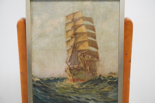 Antoine MAGNE (1883-1968). Bateau en mer. Huile sur toile signée en bas à droite. 46 x 38 cm.