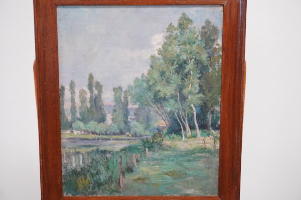 Ecole de la fin du XIXe - début du XXe siècle. Paysage. Huile sur toile encadrée. 47 x 38,5 cm.
