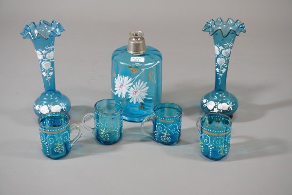 Lot de verreries émaillé dont une paire de vases soliflore, 4 gobelets, et 1 flacon incomplet.