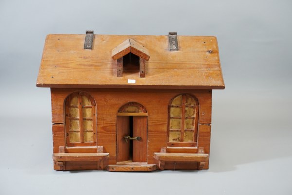 Petit coffre en bois en forme de chalet. 32x44cm.