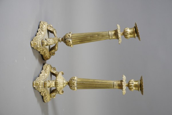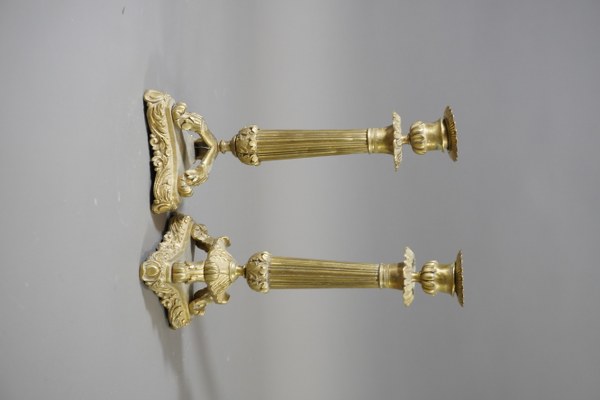 Paire de bougeoirs tripode en bronze doré. Hauteur: 27cm.