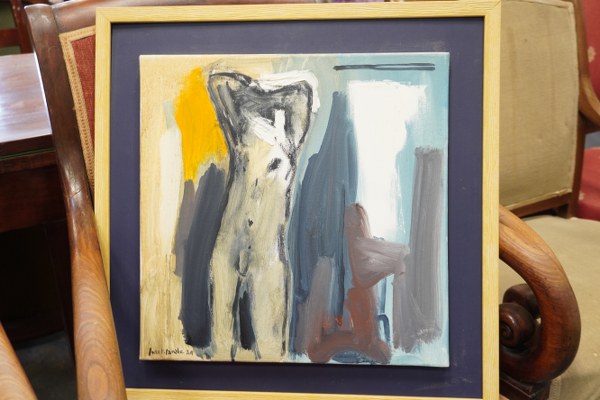 Ecole du XXIe siècle. Deux huiles sur toile figurant des nus. Signées. A vue : 40 x 40 et 33 x 24 cm.