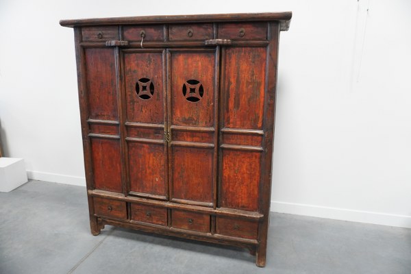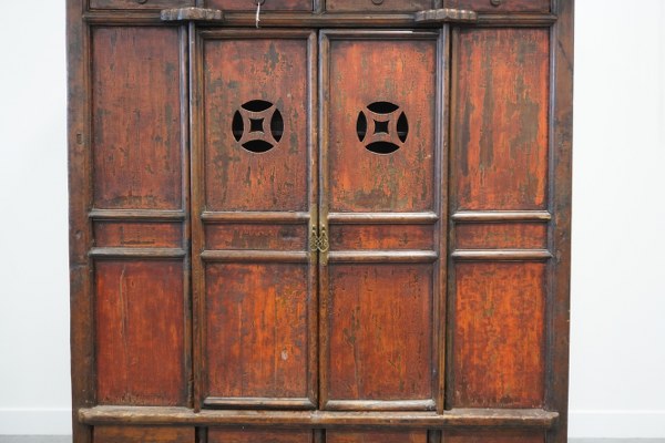 Meuble chinois ouvrant à deux vantaux et huit tiroirs. (Accidents, manques)