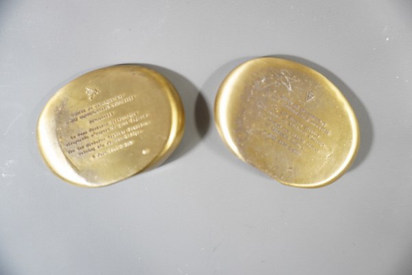 2 Plaques en bronze commémoratives sur le débarquement en Normandie. 6x8cm.