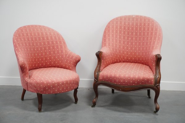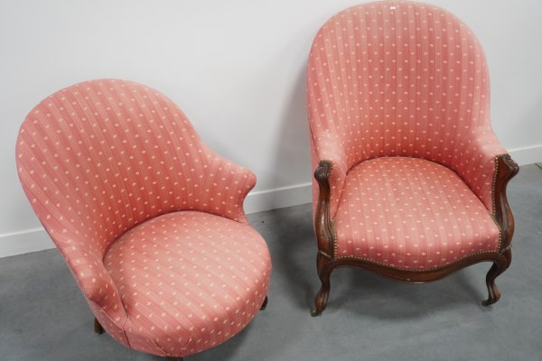 2 fauteuils avec le même tissu rose floral. Dans l'état.