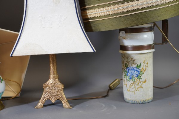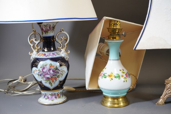 Lot de 4 lampes dont 3 en porcelaine et une en laiton.