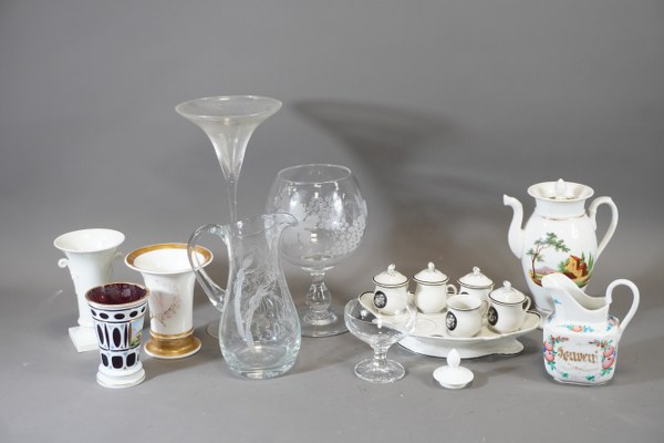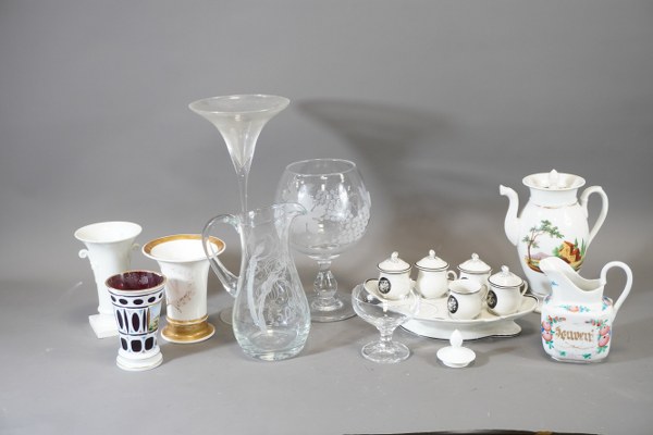 Lot de verreries, pichet, plat, vases, verseuse .... dans l'état.