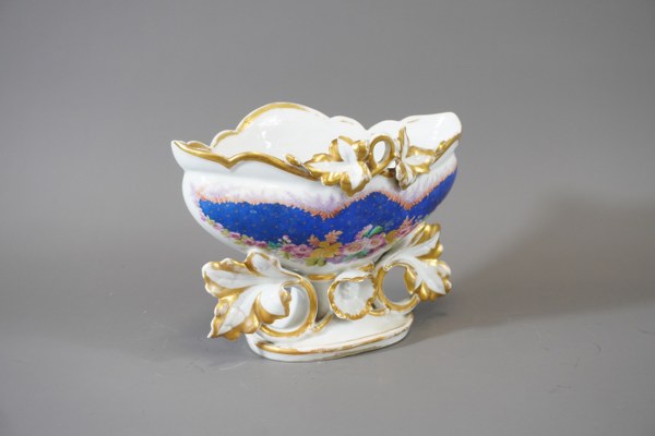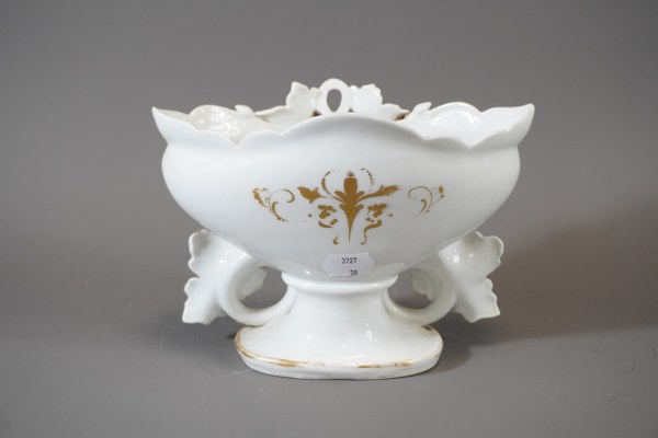 Vase en porcelaine à décor floral. Accident à une feuille. 17x24cm.