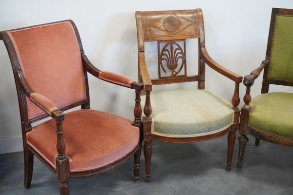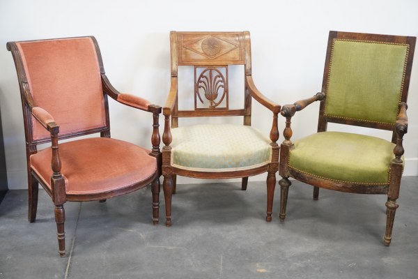 Lot de 3 fauteuils dépareillés. Accidents et restaurations.