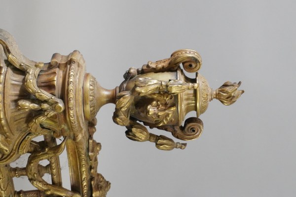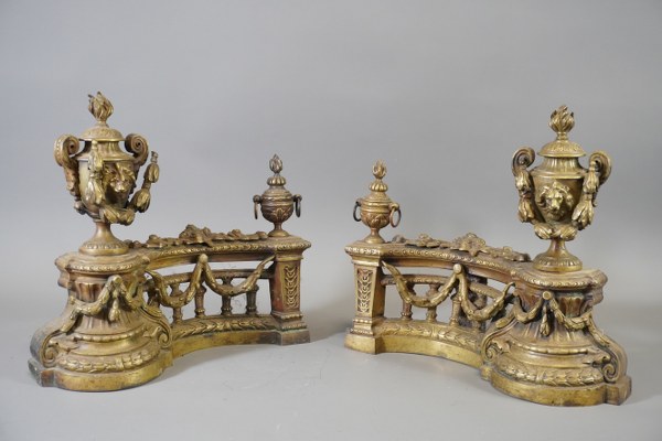 Paire de chenets en bronze à décor de pots à feu. XIXème siècle. Accidents.