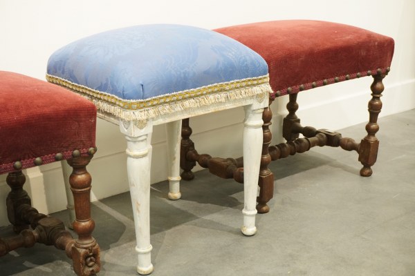 Lot de 3 reposes pieds dont 2 en chêne sculpté et mouluré.