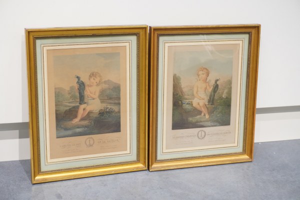 D'après Bosselman. La sagesse triomphe des flèches de l'amour et L'amour se rit de la sagesse. Deux gravures en couleur encadrées sous verre. Avec cadre : environ 45,5 x 36 cm.