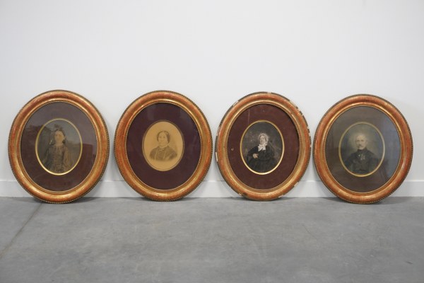 Suite de 4 portraits dans des encadrements ovales, dont 3..
