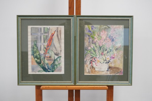 Ecole du XXe siècle. Deux aquarelles encadrées sous verre. Signées..