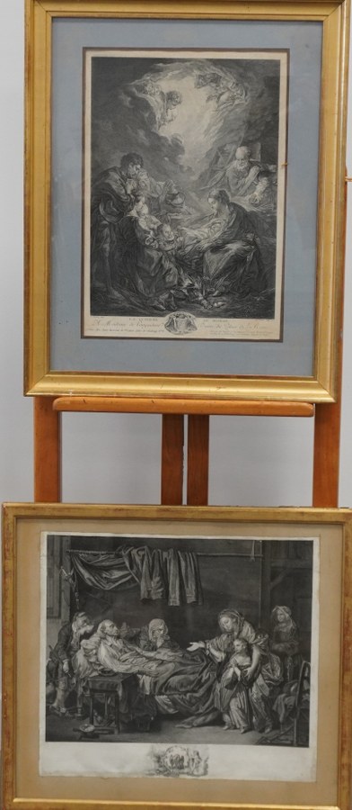 2 gravures encadrées sous verre l'une d'après Lanté et l'autre..