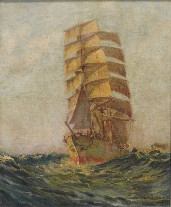 Antoine MAGNE (1883-1968). Bateau en mer. Huile sur toile signée..