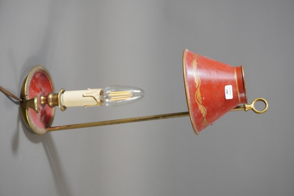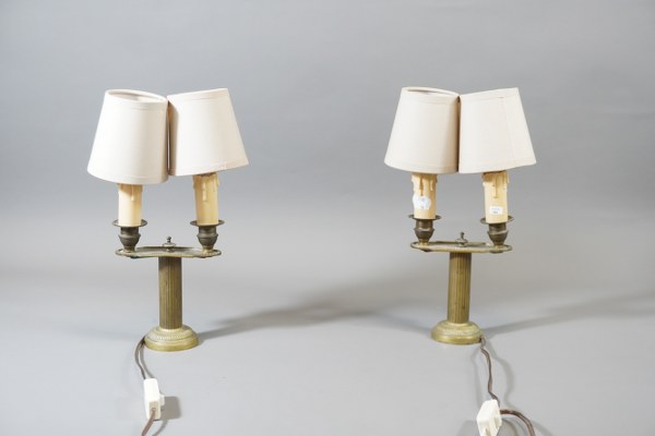 Lampe à main électrifiée monture en bronze et abat-jour en..