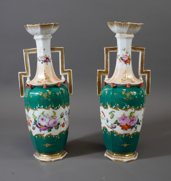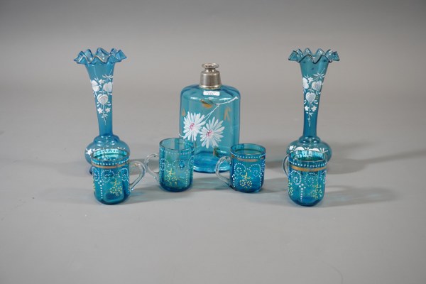 Lot de verreries émaillé dont une paire de vases soliflore,..