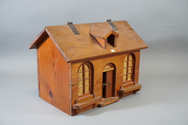 Petit coffre en bois en forme de chalet. 32x44cm.