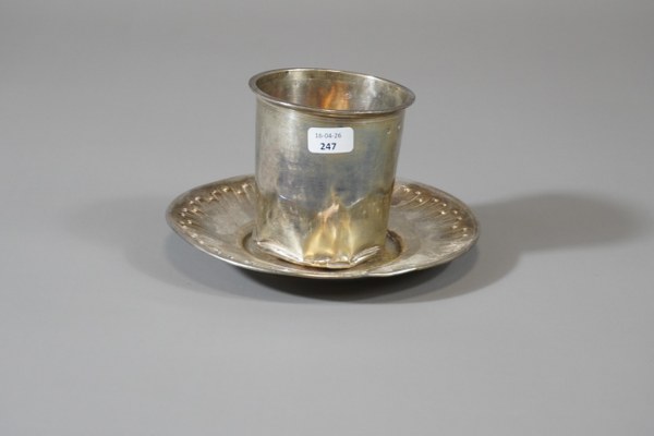 Timbale et sous tasse en argent. 80gr. Bosses.