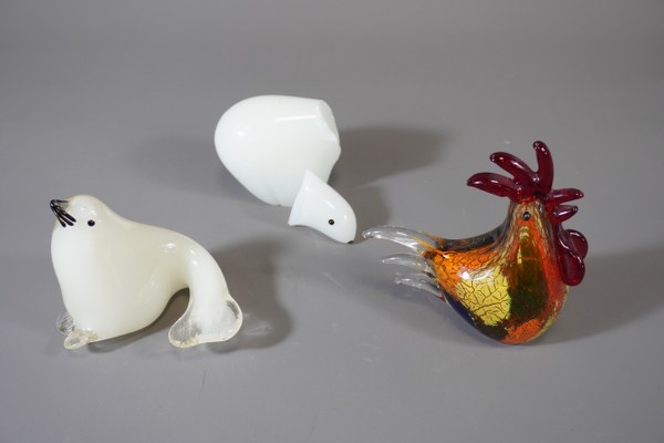 Lot de 3 animaux en verre "ours, phoque et coq"...