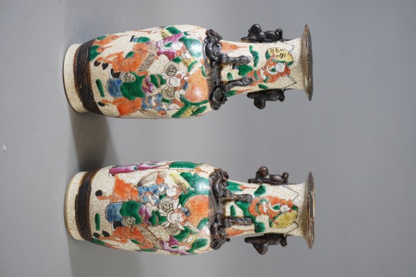 Paire de vases Nankin à décor de guerriers. Hauteur: 28cm...