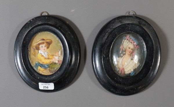 2 Miniatures encadrées d'une femme et d'une jeune fille. Hauteur:..