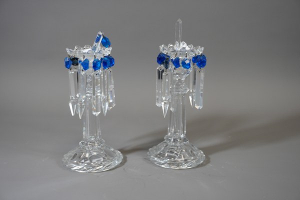 Paire de bougeoirs à pendeloques. Hauteur: 22,5cm. Accidents.