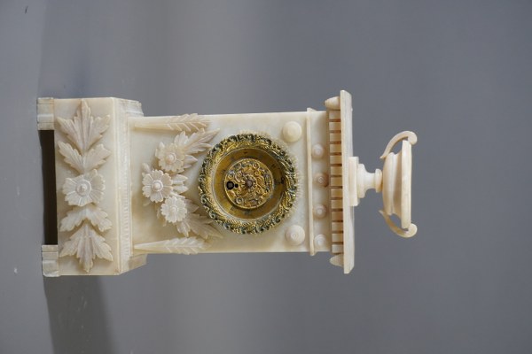 Pendulette en onyx et cadran en bronze doré. Accidents. 32,5x16cm...
