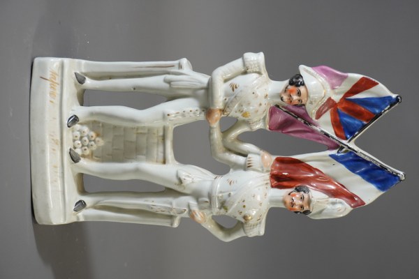 Statuette couple Napoléon et le prince Albert en porcelaine. 35x16cm.