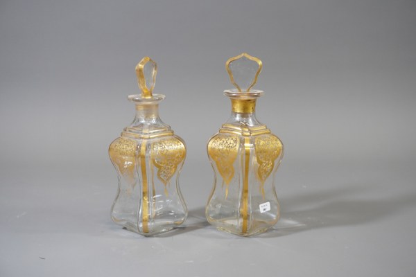 Paire de flacons en verre avec dorure. Hauteur: 20,5cm.