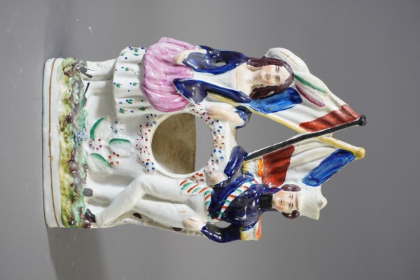 Porte montre en faïence représentant un couple militaire Français. 26,5x16cm.