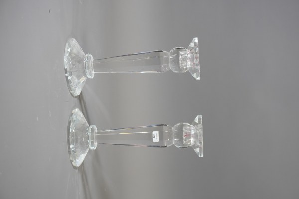 Paire de bougeoirs en verre. Hauteur: 22cm.
