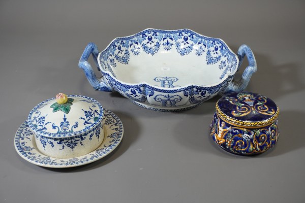 Melonnière en faïence de Gien. 26x34cm. On y joint 2..