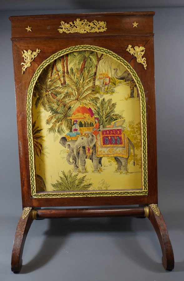 Écran de cheminée empire avec monture en bronze doré, garniture..